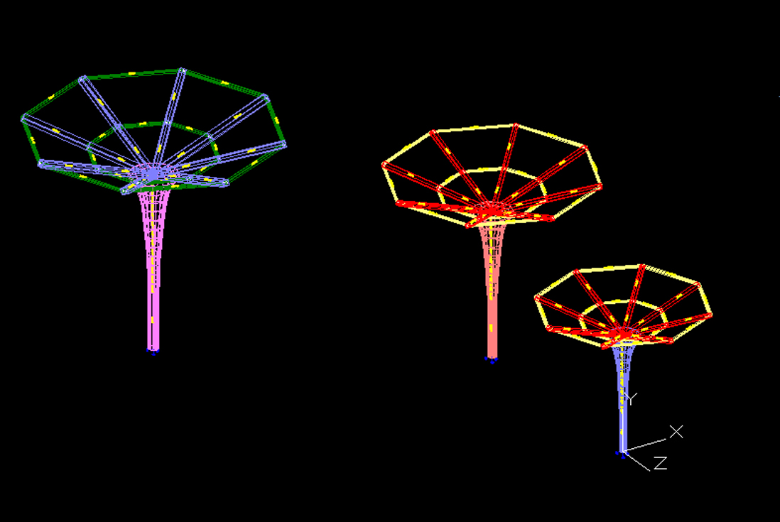 项目难点: 悬臂柱结构形式,顶部伞状,风压较大,顶部位移难控制。