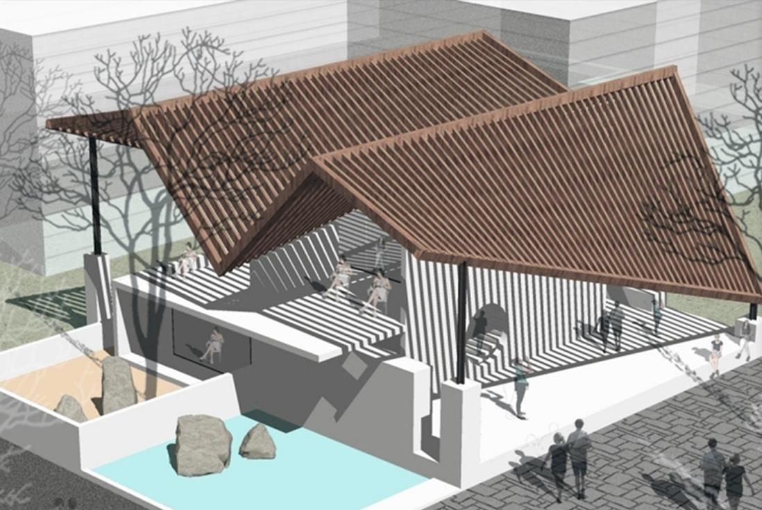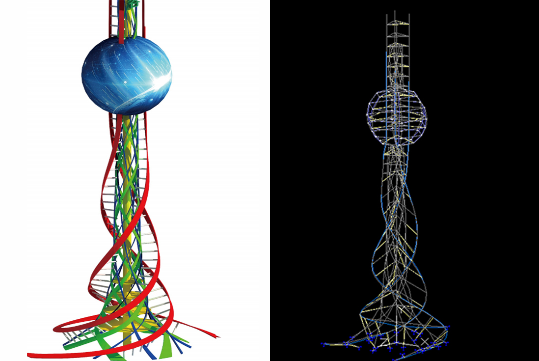 建筑整体高度在30多米,造型负责,建模采用犀牛软件搭建。