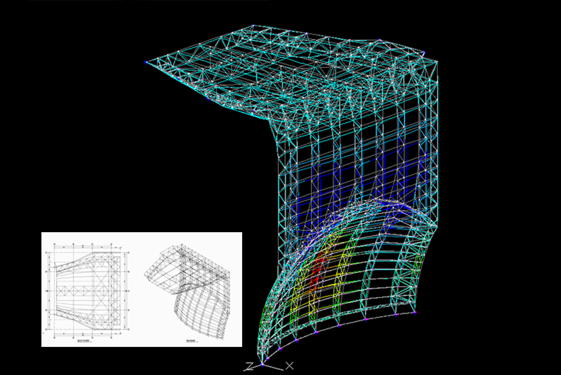 项目难点: 造型较为奇特,结构含钢量较大;因为体量较小以满足建筑师意图主;结构整体采用矩形空心管装饰性较好。