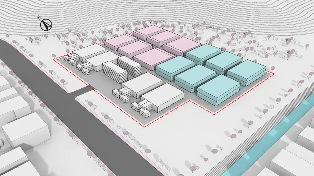 所以我们换个思路沿街布置院落式钢结构厂房,将厂房的辅楼沿街布置,降低销售风险的同时提高产品溢价。