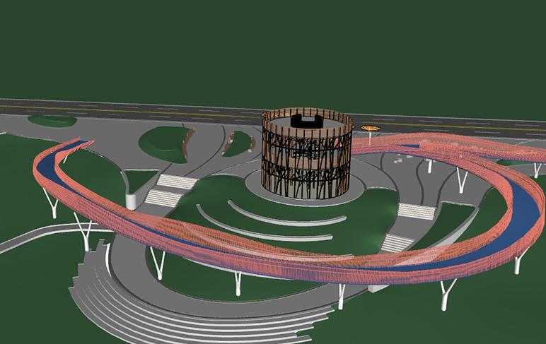 建筑整体高度在30多米,造型负责,建模采用犀牛软件