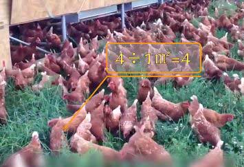 你看着散养鸡,1平米最多养4只鸡,容鸡率就是4。