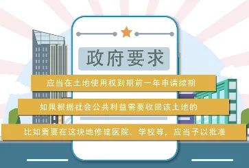 一、根据《城市房地产管理法》第二十二规定,土地使用权出让合同约定的使用年限届满,土地使用者需要继续使用土地的,应当至迟于届满前一年申请续期,除根据社会公共利益需要收回该土地的,如修建医院、学校等,应当予以批准。